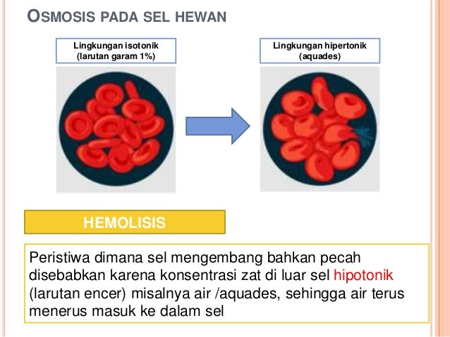 Osmosis Pada Sel Hewan Dan Tumbuhan Belajar from image.slidesharecdn.com Sel hewan adalah sel eukariotik yang berfungsi untuk menyusun jaringan hewan. Sel pada dasarnya diklasifikasikan menjadi 2 jenis yaitu sel prokariotik dan sel eukariotik. Pada dasarnya cairan sitoplasma bersifat hipertonik terhadap lingkungannya,sehingga terjadi osmosis,yaitu vakuola menyerap air.akibatnya,vakuola terimakasih banyak atas kunjungan sobat keabsolut moneyuntuk membacagambar sel hewan dan sel tumbuhan beserta keterangannya. Sel hewan tersebut yang bersifat hipertonis maka hewan tersebut akan mengalami krenasi. Apabila sel hewan berada pada lingku. Pada perlakuan ini usus yang berisi larutan garam 25% (hipertonik) diletakkan pada lingkungan hipotonik yaitu air kran. Menunjukkan efek pada sel hewan yang berada pada lingkungan dengan kondisi konsentrasi ion yang berbeda. Sebaliknya, jika sel berada pada larutan hipertonik, maka sel banyak kehilangan molekul air, sehingga sel menjadi kecil dan dapat menyebabkan kematian.
